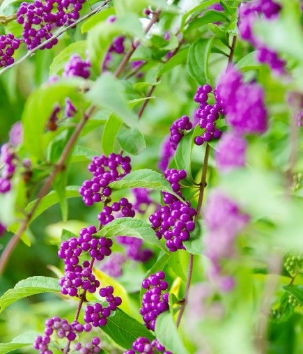 日当たりから半日陰で良く育ち、秋には紫色の実をつけます。
