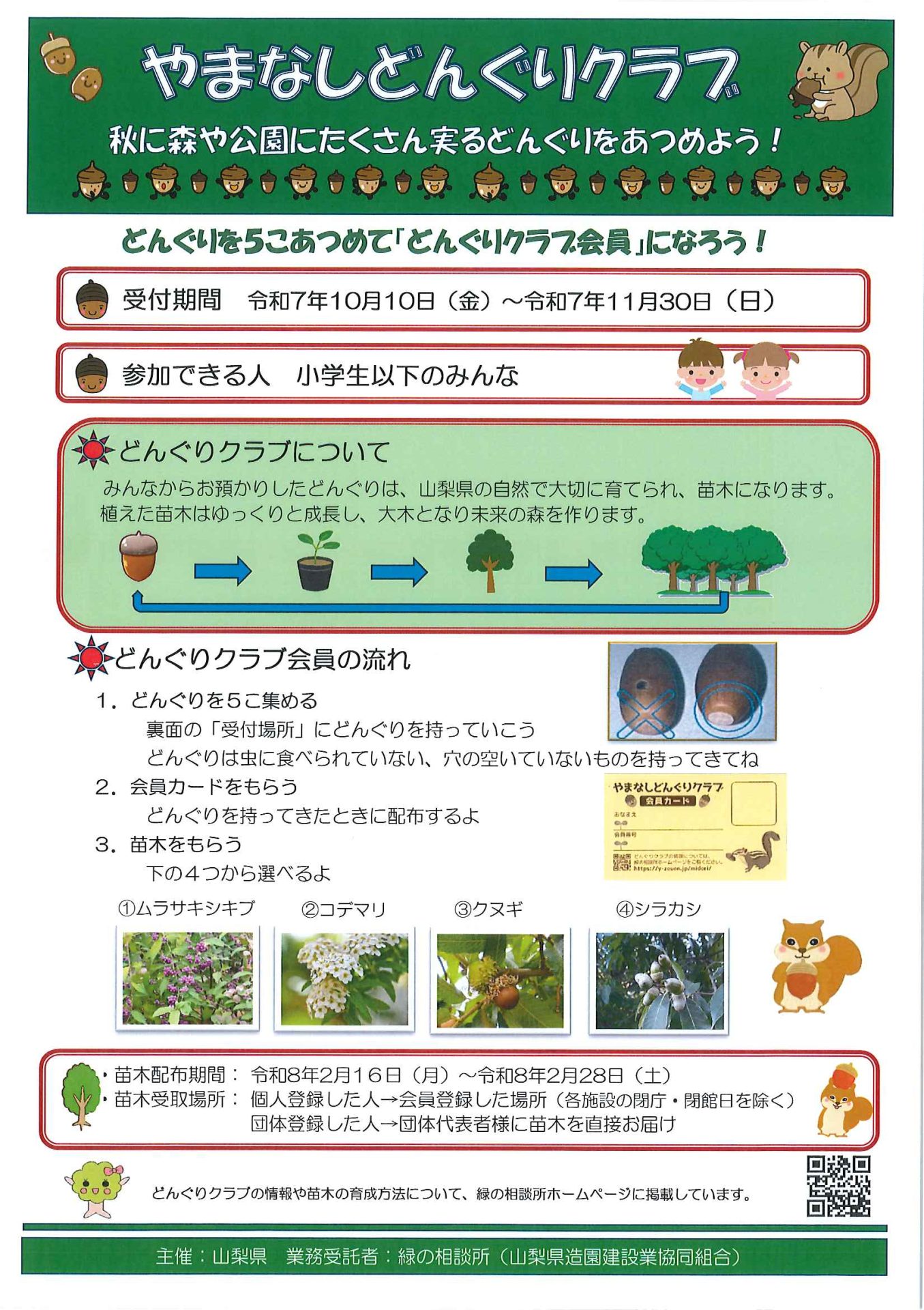 山梨県では、次のことを目的としてやまなしどんぐりクラブを実施しています。