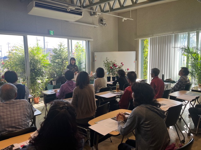 講師にコマツガーデン代表の後藤みどり先生を迎え、バラのある庭作りについて学びました。