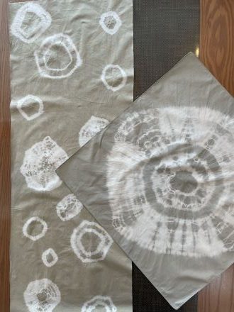 草木を煮出して作った液にバンダナ等を浸して染める工程を学ぶ