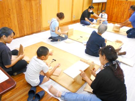 材料はあらかじめ三井先生が準備してくれたので、これを組み立て、釘打ちをし最後にサンドペーパーをかけて仕上げました。