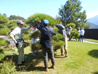 講師に現代の名工・樹木医の小林稔蔵先生を迎え、秋の松の本手入れについて学びました。