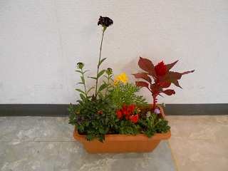 多年草3種、宿根草1種が含まれ長く楽しめる寄せ植えになりました。