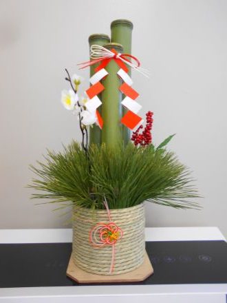 竹・松・梅飾り等を本体にセットし、完成させました。