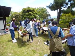 第3回緑の教室を5月21日(日)富士川町の森林総合研究所森の教室で開催。 講師に三越松花園の秋山智仁先生を迎え、「初夏を彩る寄せ植え」をしました。