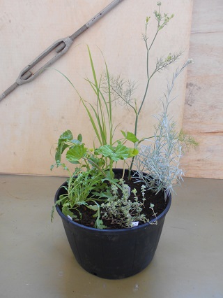 講師の輿石睦子先生は、管理栄養士の資格をお持ちで、ハーブも食材のひとつとして料理などに使う中で、ハーブの魅力に魅せられ研究を重ねハーブの分野でマスコミにも取り上げられ活躍されています。 今回も「暮らしに役立つハーブの寄せ植え」ということでサラダや炒め物等の食材、ティーとして使われるハーブ7種の寄せ植えをしました。 使用した苗はシルバータイム・コモンマロー・フェンネル・レモングラス・カレープラント・バジル・ルッコラ、以上の7種です。 最後に輿石先生から日常の管理として、水やり・追肥・摘芯とわき芽摘み・病害虫の駆除・中耕等について指導を受けました。