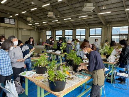 第4回緑の教室が5月26日(日)甲府市の中小企業人材開発センターで開催されました。 講師に、JHS認定校 やまなしMU・ハーブスクール主宰の輿石睦子先生を迎え、「ハーブの寄せ植え」をしました。