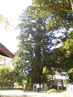 この日はまず、富士河口湖町の国指定天然記念物「精進の大スギ」に行きました。精進諏訪神社の境内にある樹齢(伝承)1200年、樹高43m、幹周10.5mの大木です。