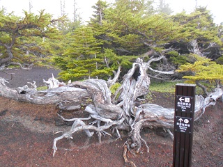 次に行ったのが富士山5合目駐車場の約2㎞手前にある「奥庭」、標高2100m。植物の垂直分布を観察しました。