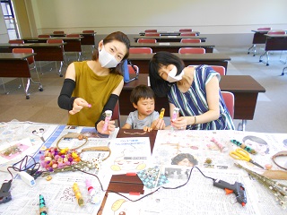 講師に清里の森でクラフト雑貨のお店「森の日曜日」を経営する近藤かおり先生を迎え、森の恵みを使いモビールを作りました。