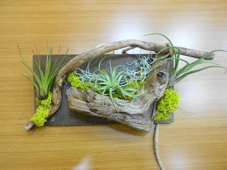 せいか先生の指導のもと、エアープランツや森の素材を流木にアレンジしました。