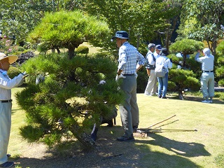 座学で、松の樹姿・樹勢を保つ手入れの方法について「もみあげ作業」「松の葉刈り」等説明を受けました。