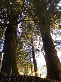 2本とも樹勢はすこぶる良く仲良く威風を競い合っています。向かって右が男杉、左が女杉と地元の人は呼んでいます。