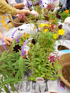 先生が丁寧に教えてくださり、寄せ植えが初めての方も上手にできました。