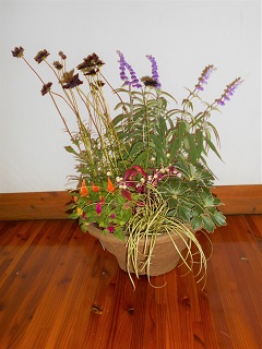 チョコレートコスモス・ケイトウ・ベアグラス・アルテンナンテラ・イソギク・サルビアレウカンサ