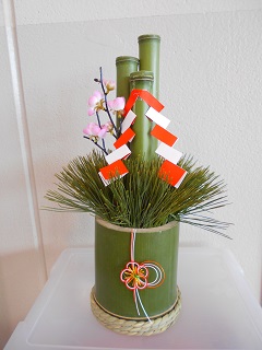 竹・松・梅飾り等を本体にセットし、完成させました。