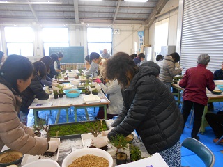 令和元年度 第27回 緑の教室が12月15日(日)県立中小企業人材開発センター(甲府市)で開催されました。 盆栽作家・陶芸作家の雨宮忍先生に講師をお願いし、松竹梅を使い「正月向けの寄せ植え」を作りました。