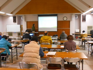 まず座学にて ①樹木の生育環境 ②剪定の目的 ③樹木の芽の種類と枝の出方 ④切るべき枝 ⑤樹木の特性 ⑥剪定の種類と適期 ⑦病虫害防除 など、樹木の剪定の基礎知識について学びました。