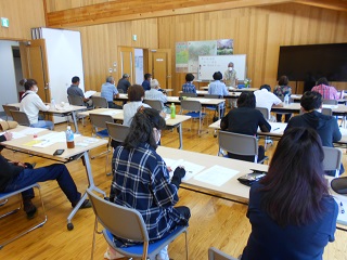 まずは座学で、講師の角田先生から、花芽の形成・置き場・水やり・肥料・病虫害防除・土・剪定の仕方