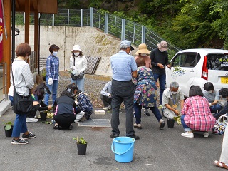 休憩後屋外に出て、挿し木の実習をしました。