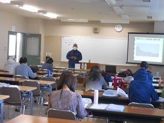 午前中は、講師の山梨環境カウンセラー協会の城野仁志先生から、緑のカーテンの効果・緑のカーテンの作り方・市町村等での取り組み事例・管理方法等について学びました。