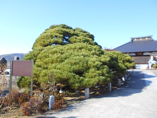 樹種はクロマツで、寺がこの場所に移されて明和2年(1765)ごろ植樹されたと考えられています。樹形が極めて美しい名木です。根廻り3.75m、目通り2.65m、樹高6.25m、枝張り東6.50m西13.30m、南2.90m、北6.55m。庭園作りの松として県下最大級の規模を誇ります。