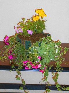 今回はスリットバスケットを使い、ペチュニア・インパチェンス・マリーゴールド・アメリカンブルー グレコマ・ヘデラ以上6種の苗を植えこみました。
