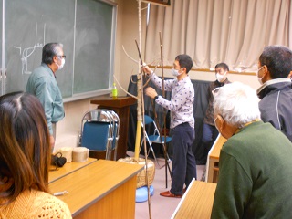 垣根等に使う紐結びについて学びましたが、なかなか難しく皆さん四苦八苦していたようです。