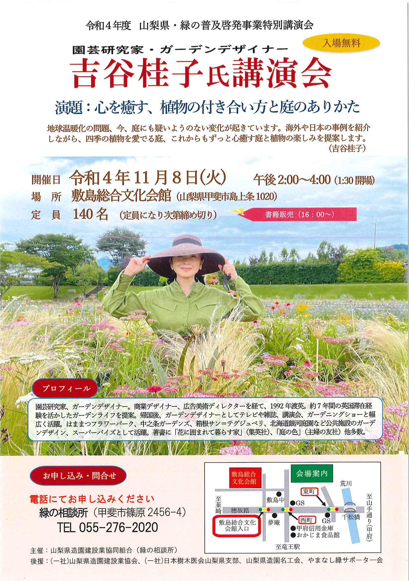 令和4年度 山梨県緑の普及啓発事業特別講演会 「吉谷桂子氏 講演会」を開催します。