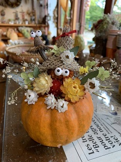 (カボチャをベースにおしゃれな置物を作る:大人1名での参加も可)