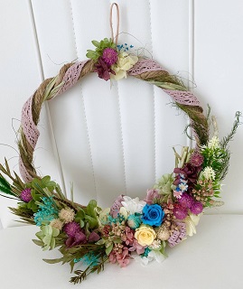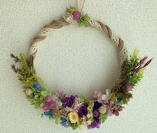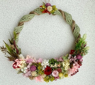 第24回緑の教室(クリスマスリース作り)のサンプル写真を掲載します。 プリザーブドフラワーやドライフラワーを使いクリスマスリースを作ります。