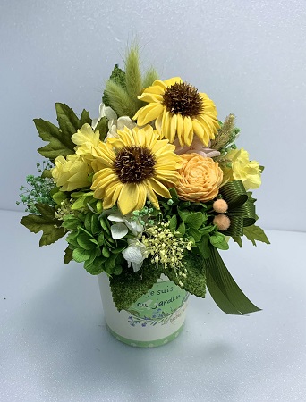 ソラフラワーはひまわり・ダリア・ローズの3種から、鉢は6種類の中から当日選んでいただきます。