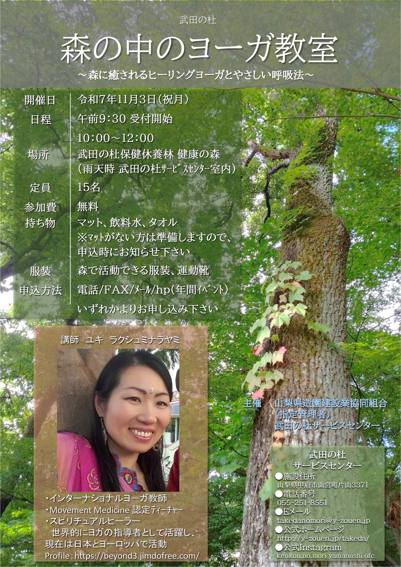 11月3日(祝月)森の中のヨーガ教室 参加者募集中!