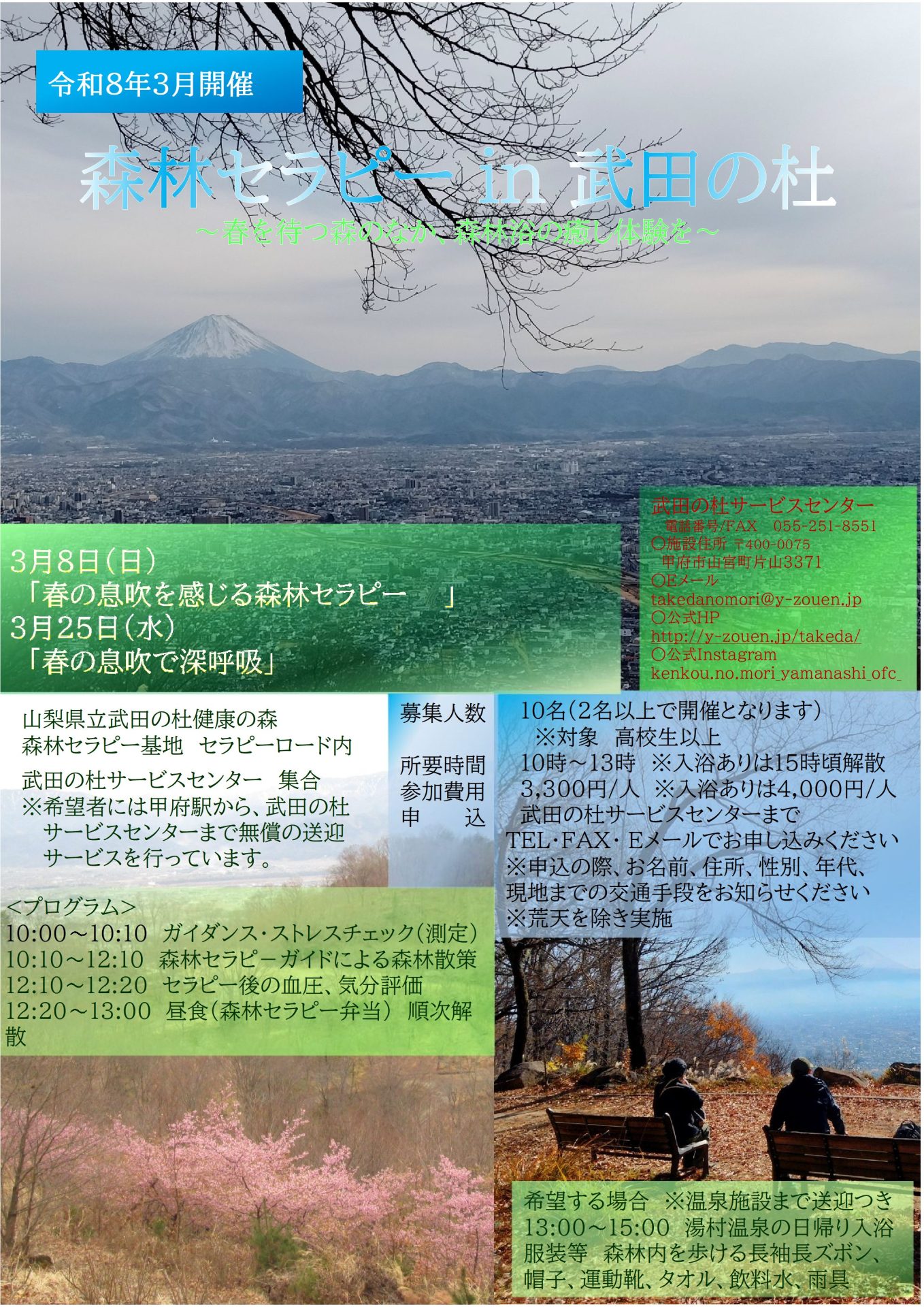 3月8日(日) 「春の息吹を感じる森林セラピー」参加者募集中