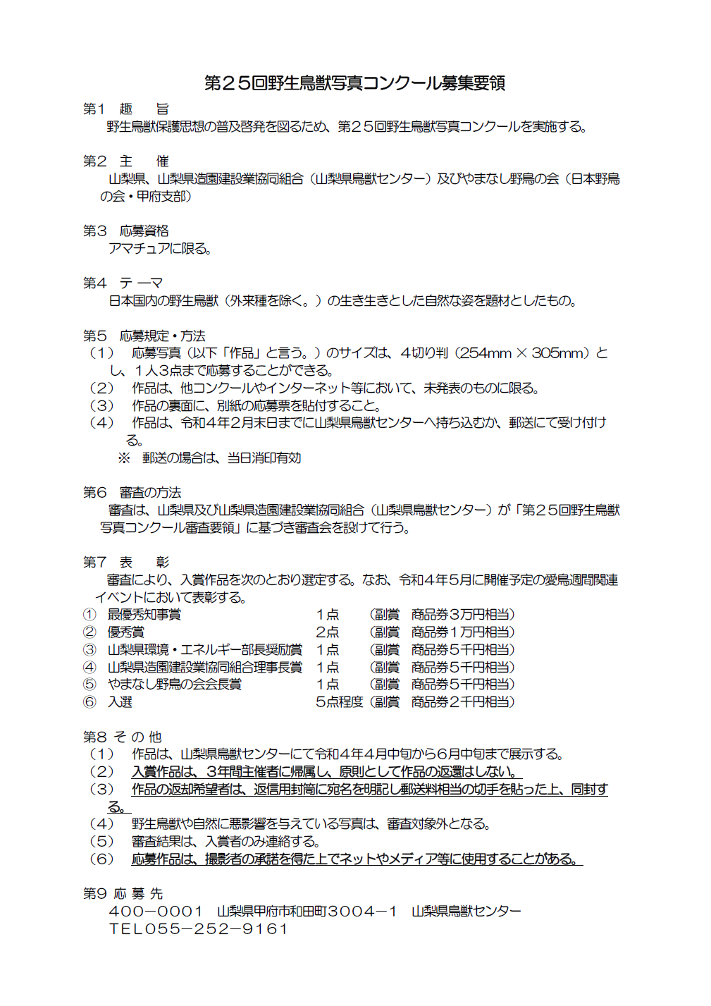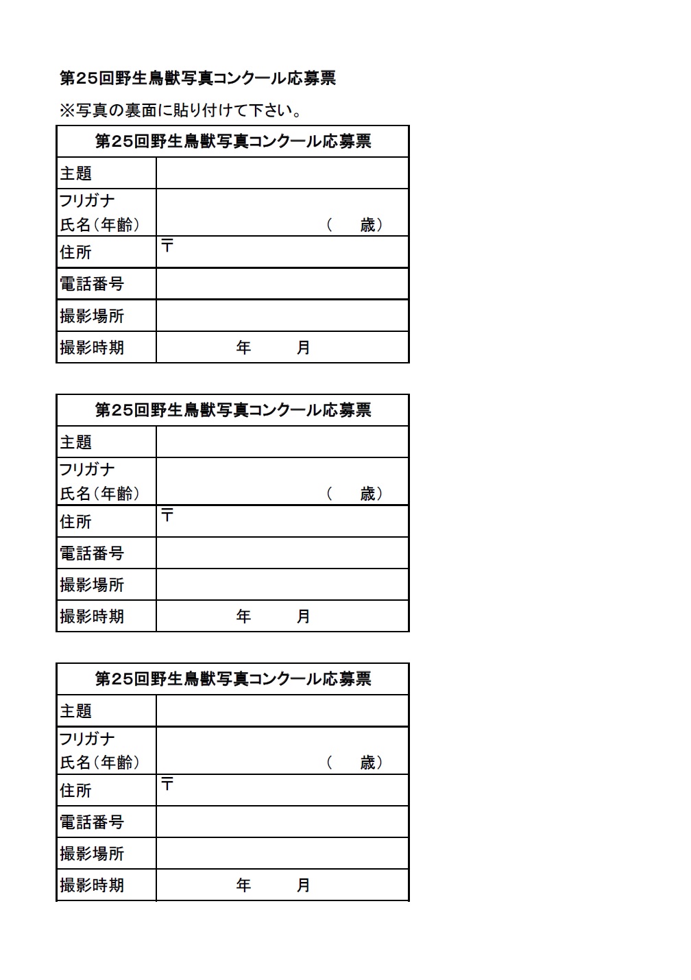 第25回野生鳥獣写真コンクールの応募受付が始まりました。