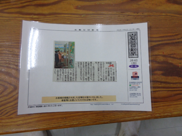 先日山梨日日新聞に記載していただきました、愛鳥週間ポスター展示会記事を、五味新聞様が保管用記事にしてくださりました。
