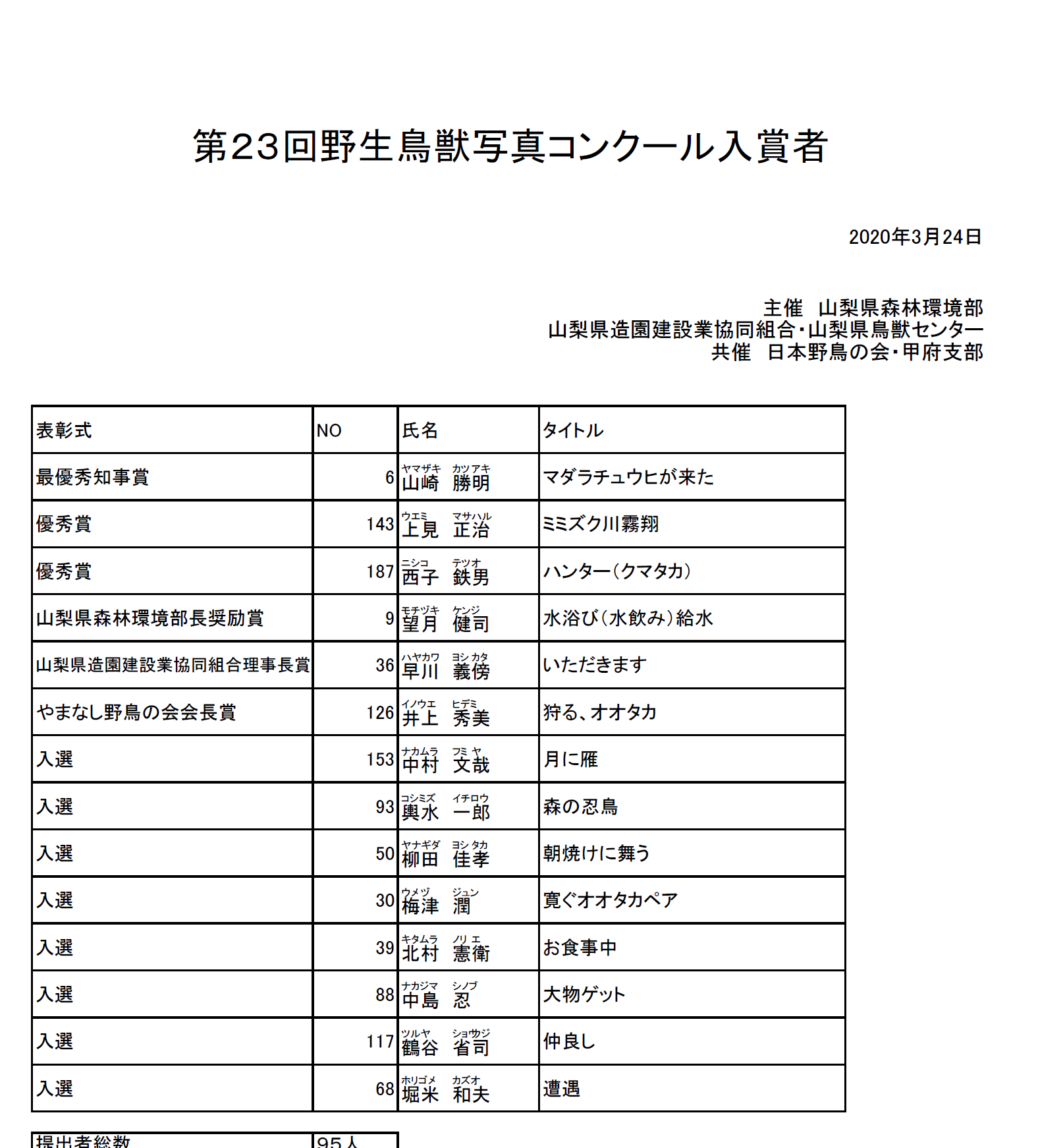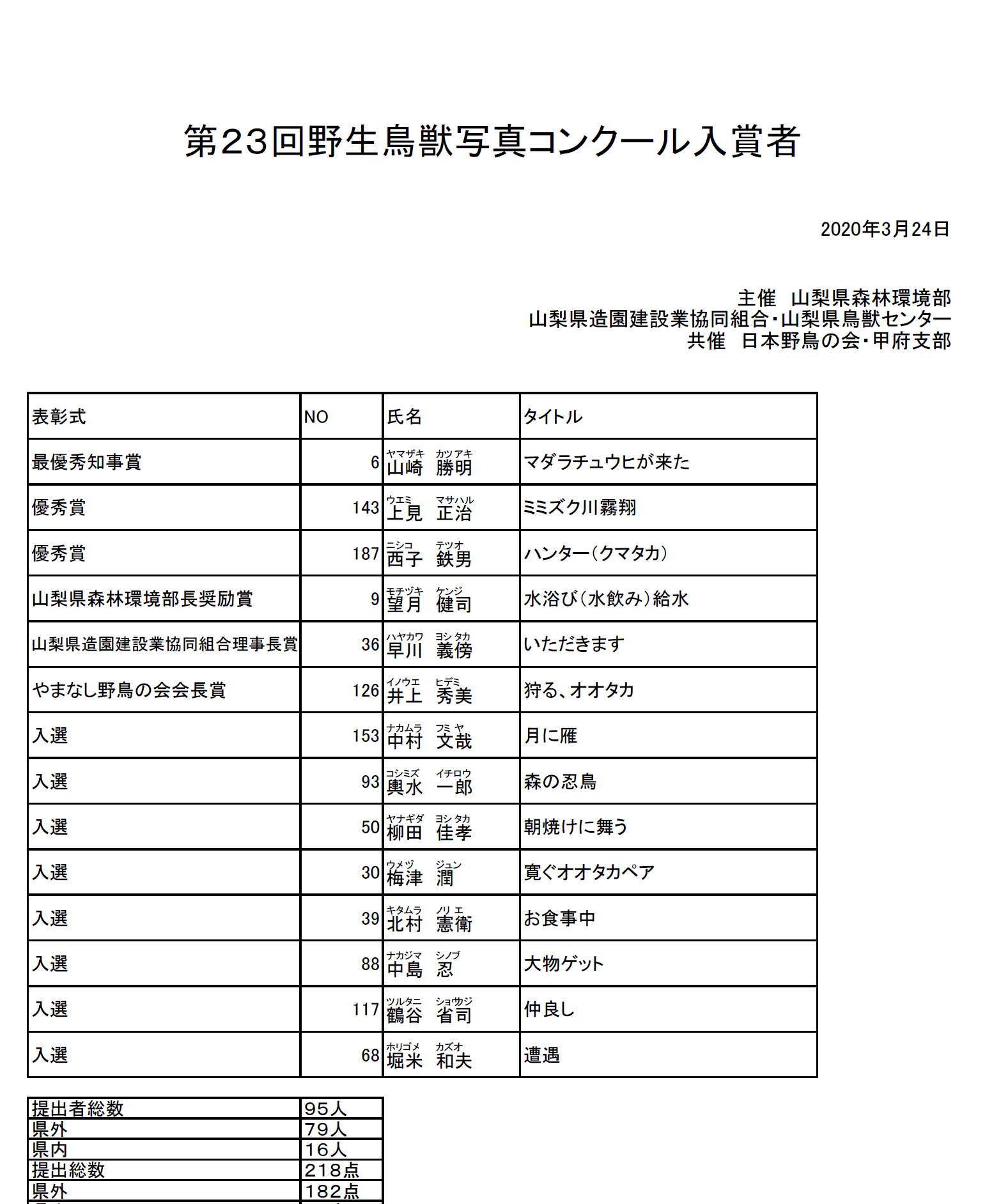 第23回野生鳥獣写真コンクールにご応募してくださった皆様、素晴らしい作品をありがとうございました!!