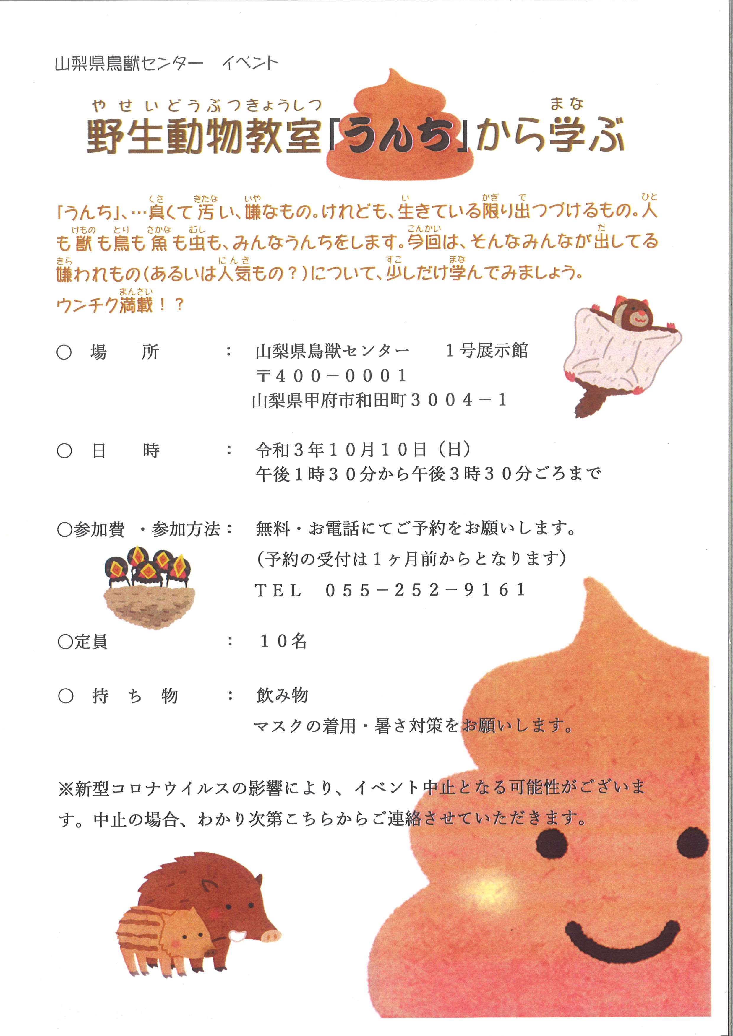 鳥獣センターでの初めての「うんち」を題材にしたイベントを行います。