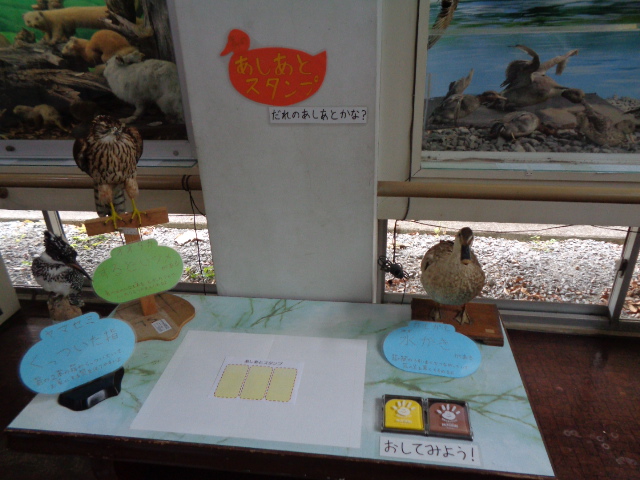鳥獣センター1号館に展示しておりますので、ぜひともスタンプを押しに足をお運びください!!