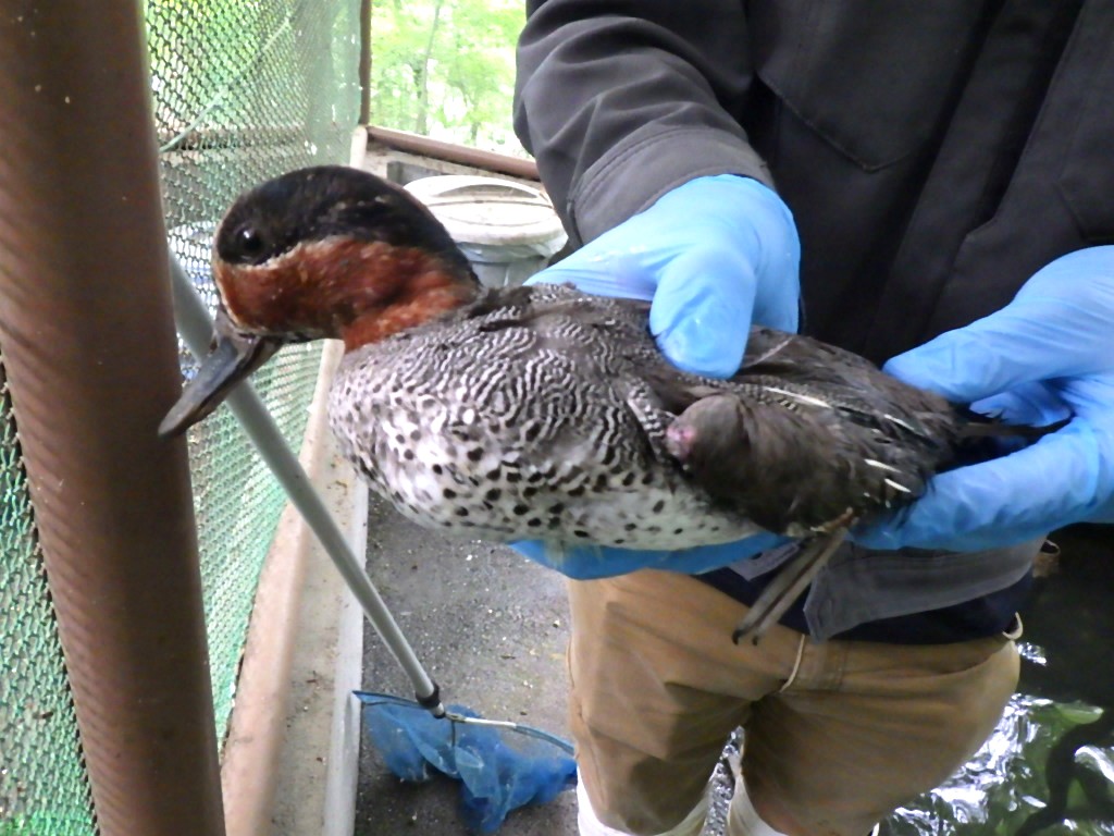 2025 年8月1日、山梨県立武田の杜保健休養林(鳥獣センター)では、鳥獣センターにおいて保護され、翼のケガのため自然に戻ることが難しいコガモ(オス)1羽とアオバト(性別不明)1羽を、多摩動物公園に譲渡いたしました。